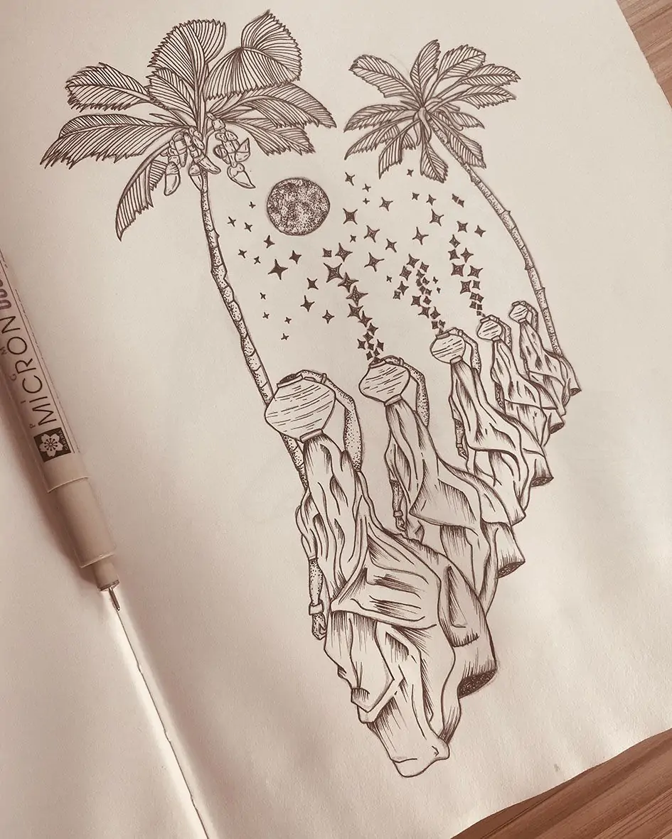 These nomads move with a serene grace, alternating between camel rides and walking, conserving and expending their physical and mental energies with ancestral intelligence. As depicted in the illustration, their nocturnal travels are often more productive, taking advantage of cooler temperatures. Upon discovering the desired oasis or desert well, often linked to ancient underground rivers, they refresh sun-kissed faces with sacred water, casting grateful gazes toward the luminous, cloudless sky.