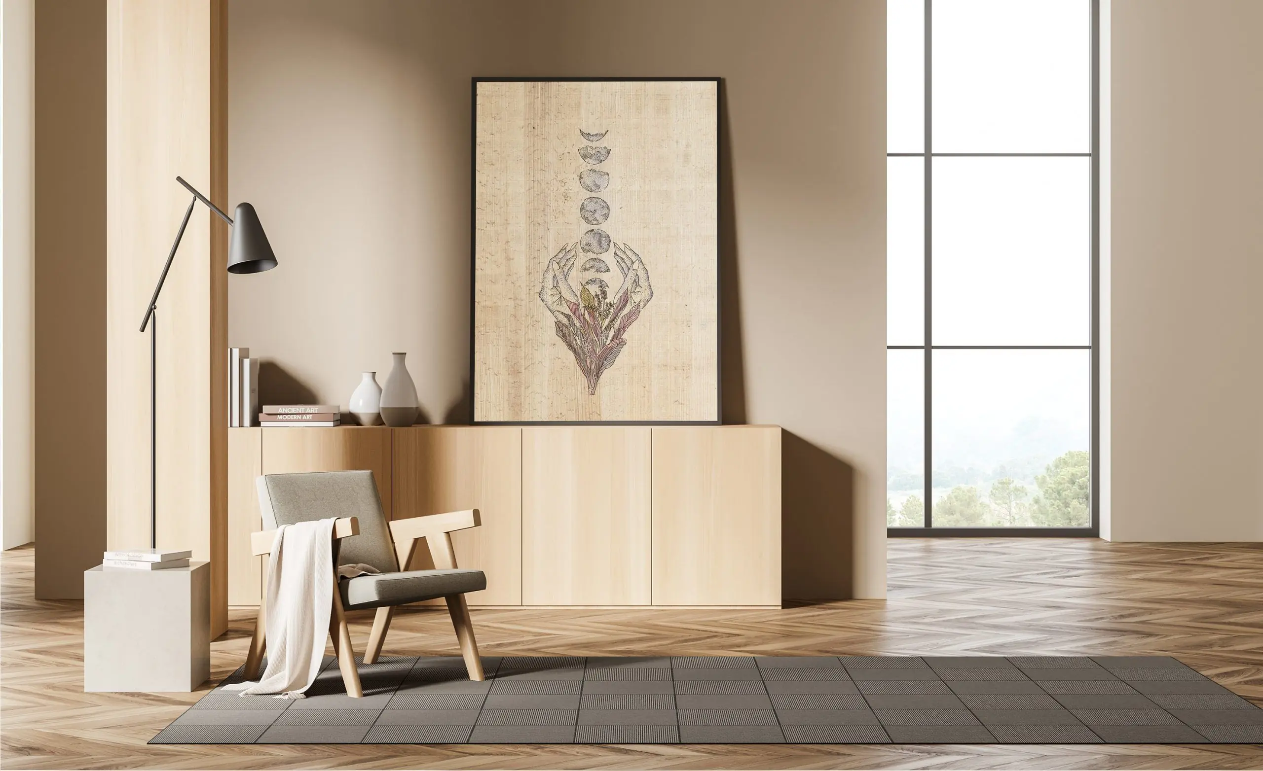 Deciding which artworks to choose for your yoga studio may set your head into a spin. But first, it is important to set the intentions for the space. What is it that you want to achieve? A sense of calm? A feeling of being energised? Or, do you want to educate those using the space? Once you have decided upon your motive for decorating the space you can begin to think about colours and aesthetics. Since yoga studios are spaces that are used by people of all backgrounds and ages, it is ideal if the decor is kept neutral so that all feel welcome. This can be achieved by decorating the space with prints of nature, yoga inspired art, moon cycle or zodiac art and other eye-catching prints.